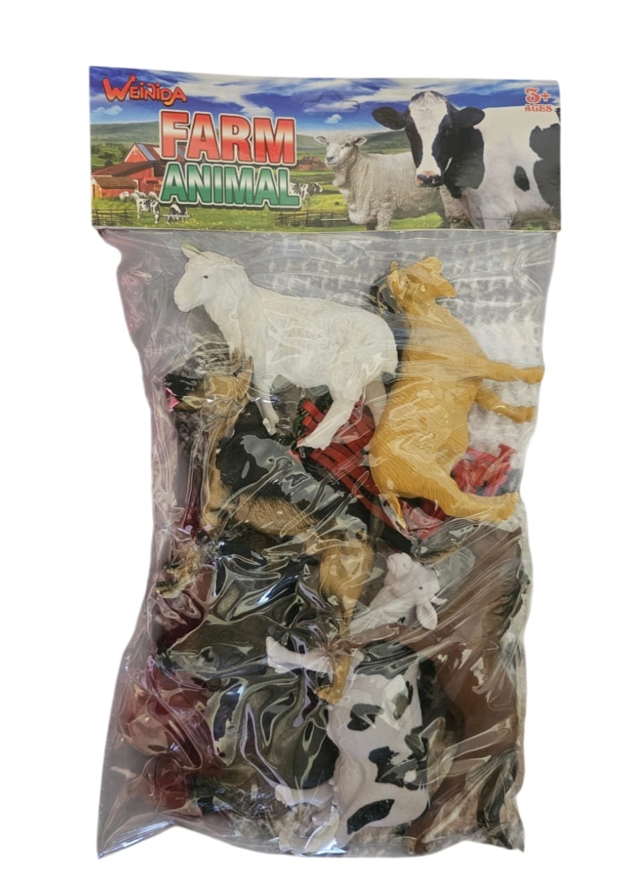 Setul „Animale de fermă” este destinat copiilor cu vârsta de peste 3 ani și include figurine reprezentând animale domestice, precum vacă, oaie, cal, capră, alături de accesorii specifice fermei (gard, plante).